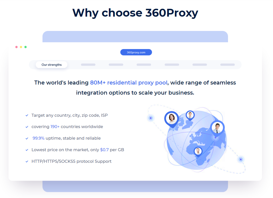 360Proxy provides 100% real residential proxy resources, covering 190+ countries and regions, and 80M+ residential IP resources. Support multiple network protocols.To meet the different needs of users, such as media account management, ESTY and SEO optimization, 360Proxy is a good assistant that can provide huge help!