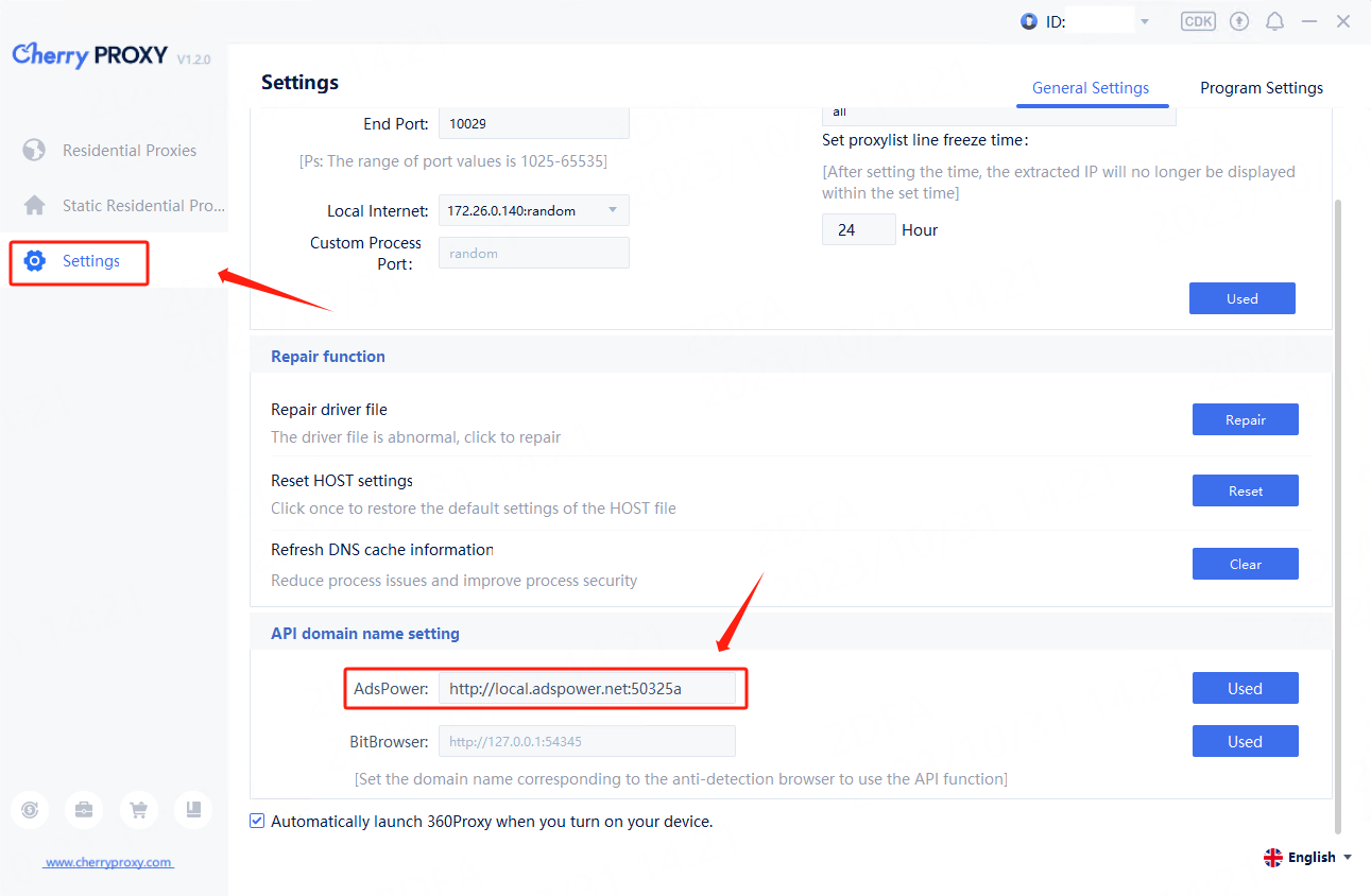 1. Open AdsPower client configuration [API domain name settings].