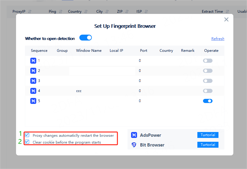 (2) Check this setting and the browser's cookie information will be cleared before each proxy.
