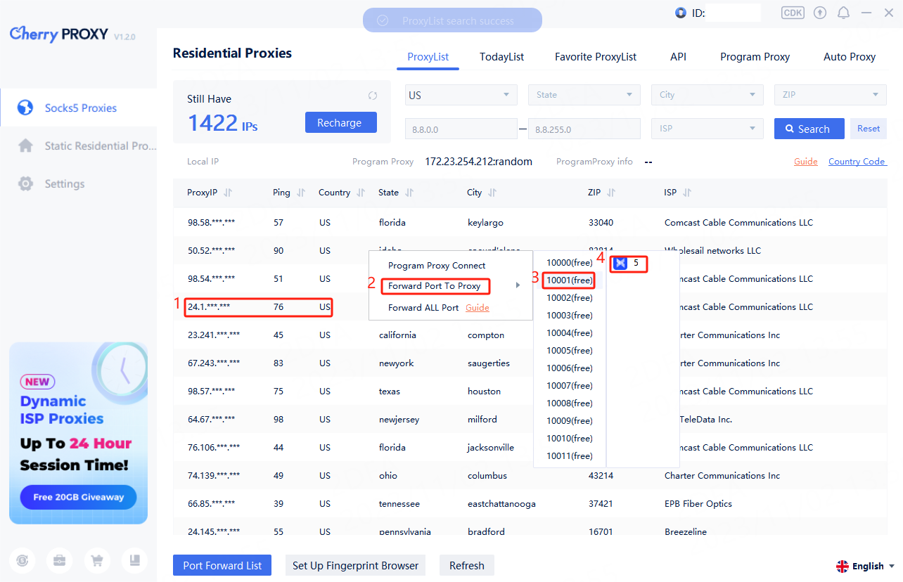 5. Right-click the IP and forward it to the port, and the currently opened fingerprint browser file will appear. Click on the fingerprint browser file you want to use to use it.