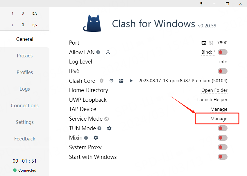 Enter the General tab and check the service mode. If it is gray, it means it is not enabled and needs to be enabled. (You can skip this step if it is already green.)