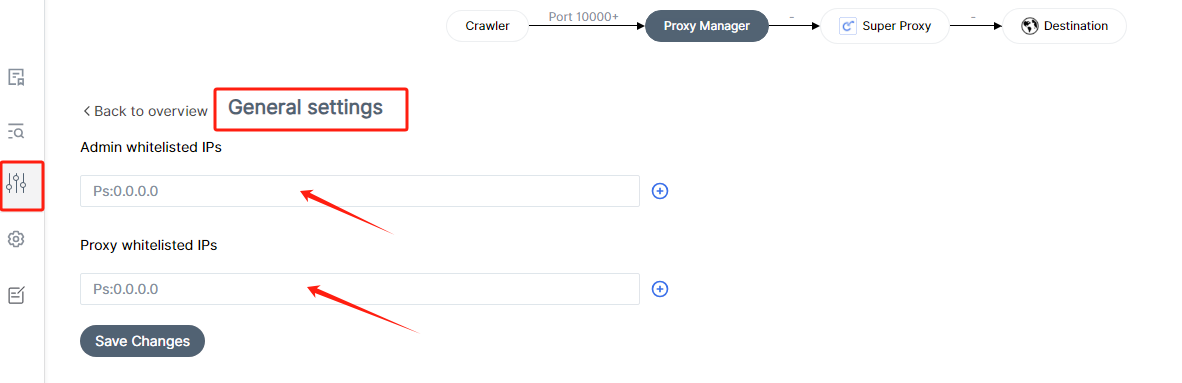 You can add administrator whitelist IP and proxy whitelist IP here. Click the "+" sign to add more IP.