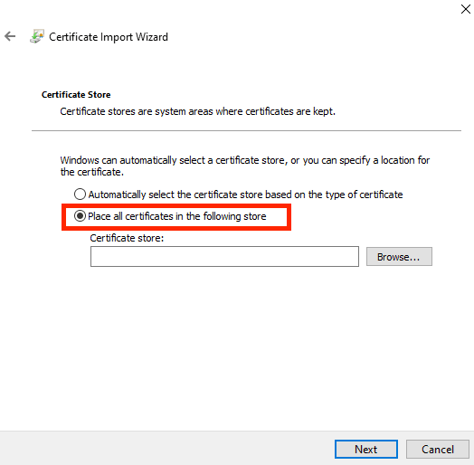Select 'Place all certificates in the following store'