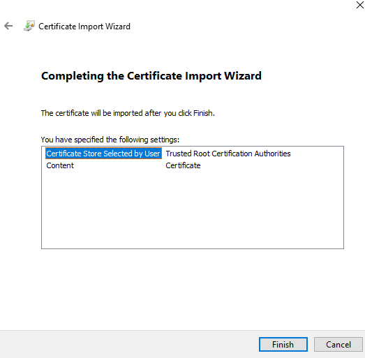 Click 'Finish', the certificate import is successful.