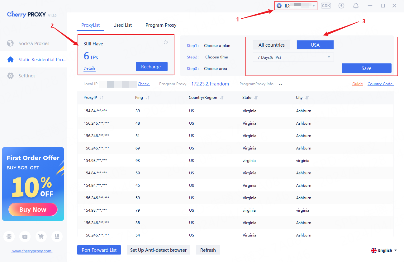 ③ Select static proxy IP for the United States/all countries
