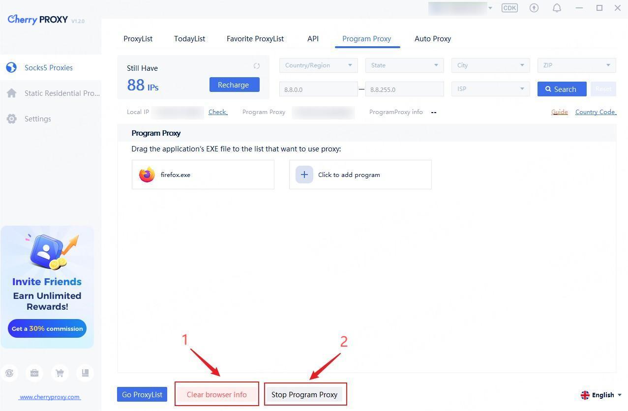 Step6:①Click the 'Stop Program Proxy' button to end the program proxy operation.