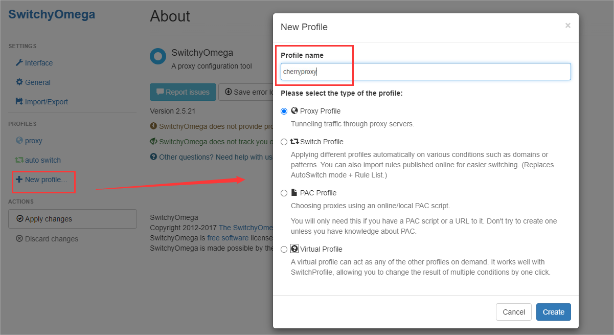1. Install the proxy extension SwitchyOmega on the browser
