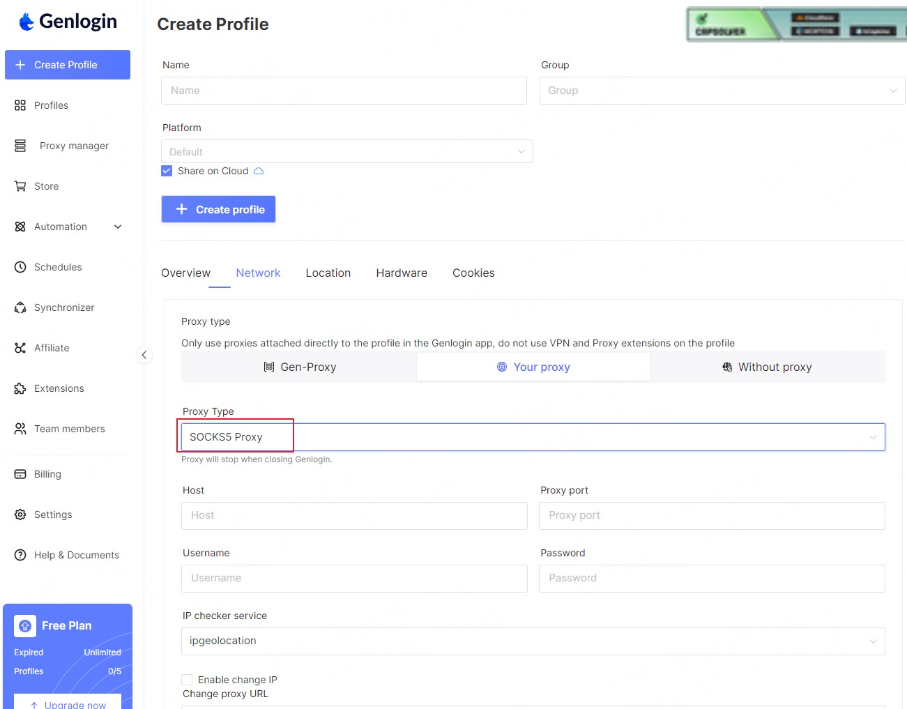 Step 2. Open the genlogin software, click "Create Profile" - "Network"-"Your proxy"