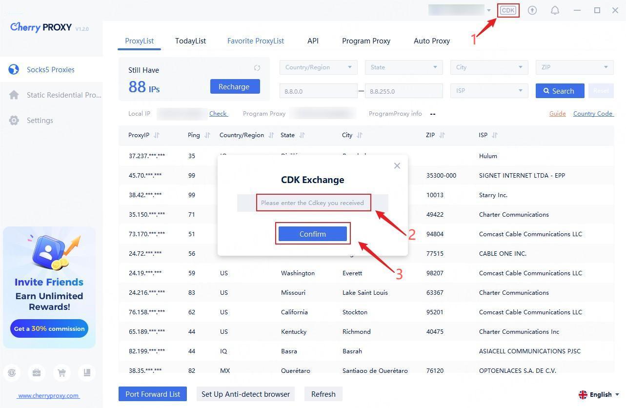 Step 2: After logging in to your account, click on the CDK window, enter the CDK information, and click "Confirm" to receive it.