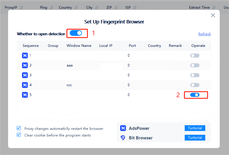 (1) Check this setting and when changing the proxy of the fingerprint browser file, the corresponding browser file will be automatically restarted.