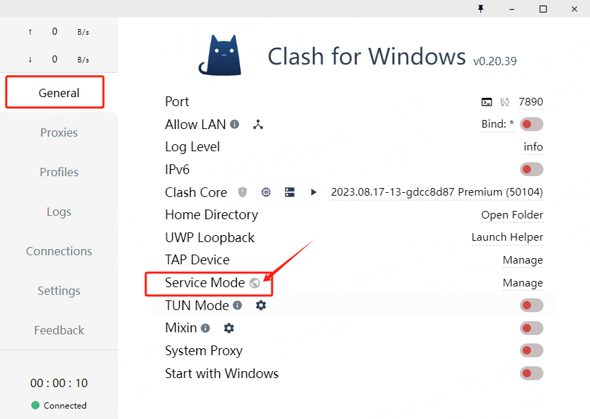 Enter the General tab and check the service mode. If it is gray, it means it is not enabled and needs to be enabled. (You can skip this step if it is already green.)