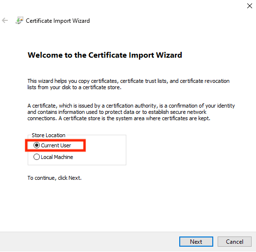 Select 'Current User' and click 'next'