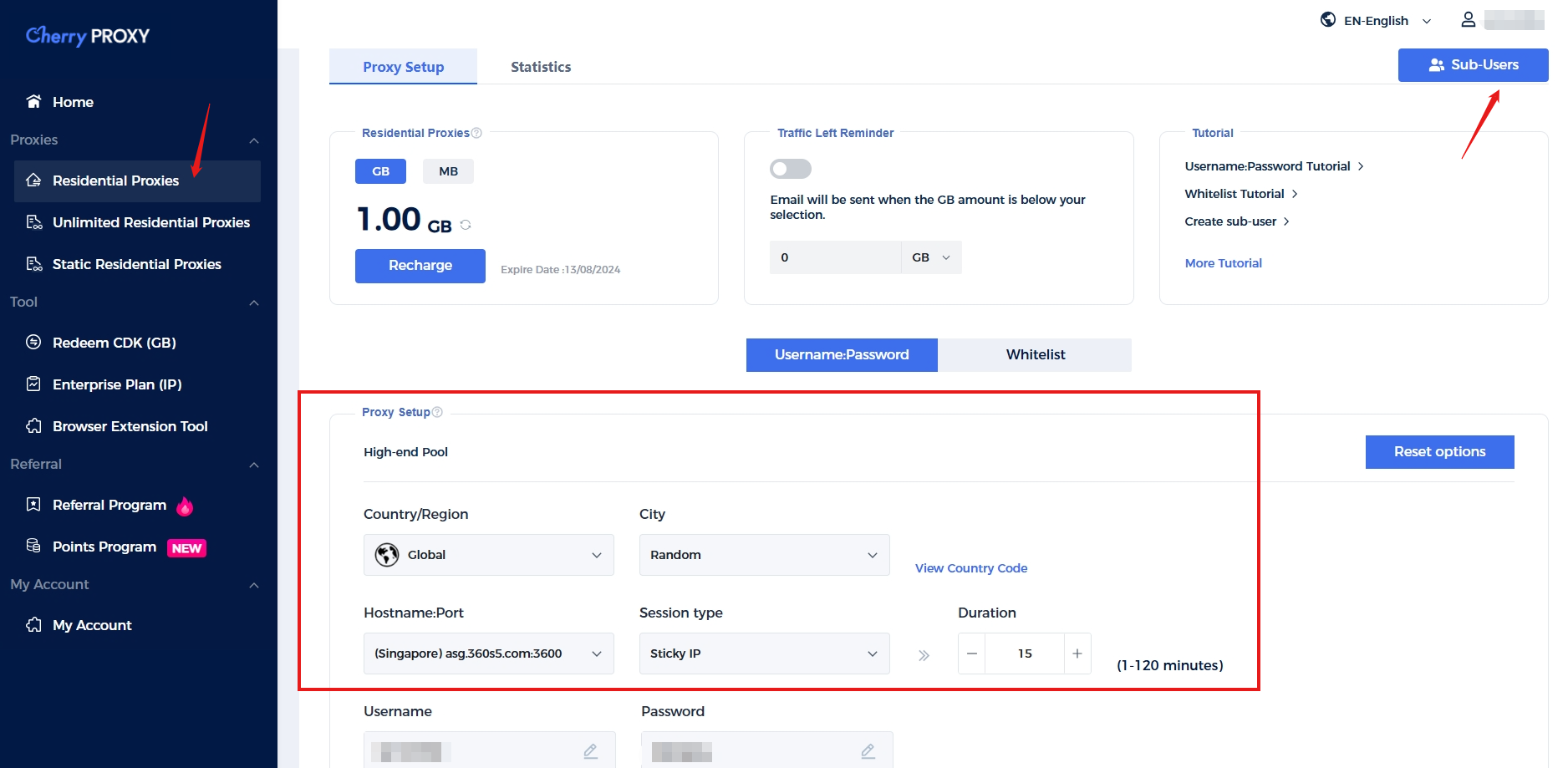Step 1: Open the Void Proxy official website, log in to your account, and select "Dashboard" - "Residential Proxies" to create and use;You can also create sub-accounts according to your own needs.