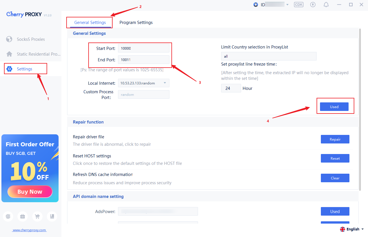 For example, if I need to extract ten IPs, I will select the Starting port: 10000 and the Ending port: 10009.