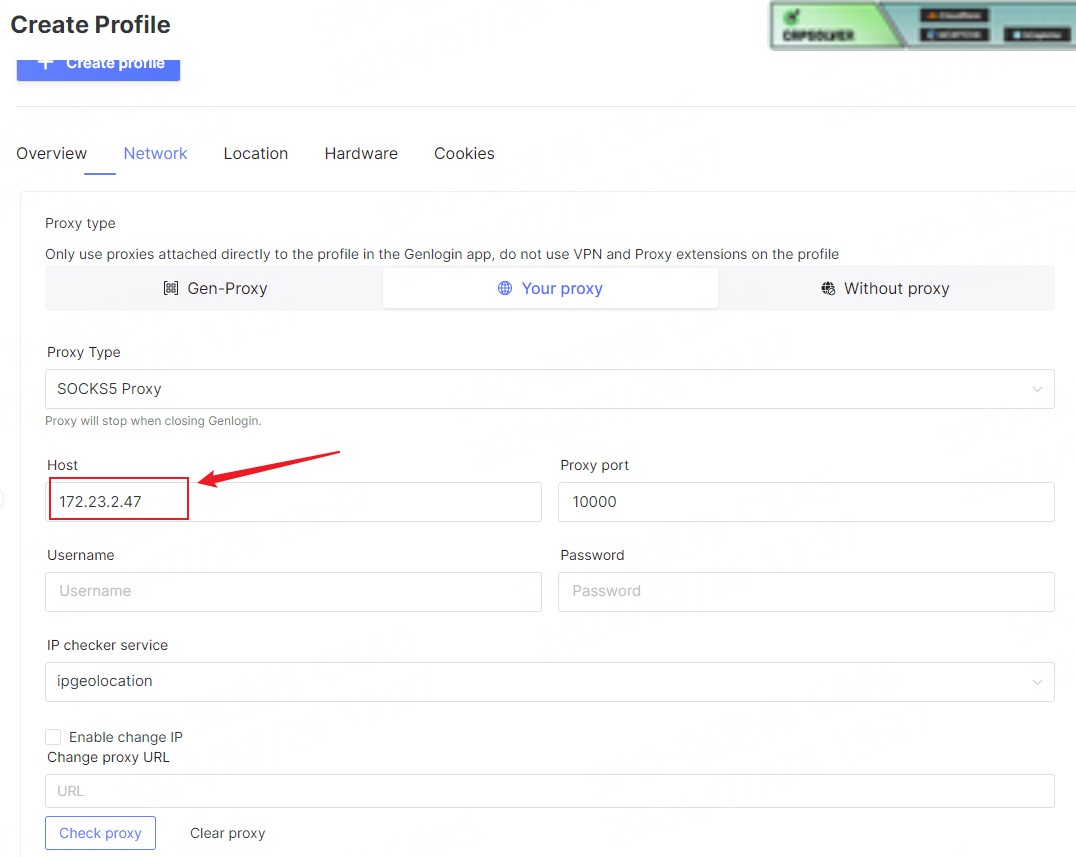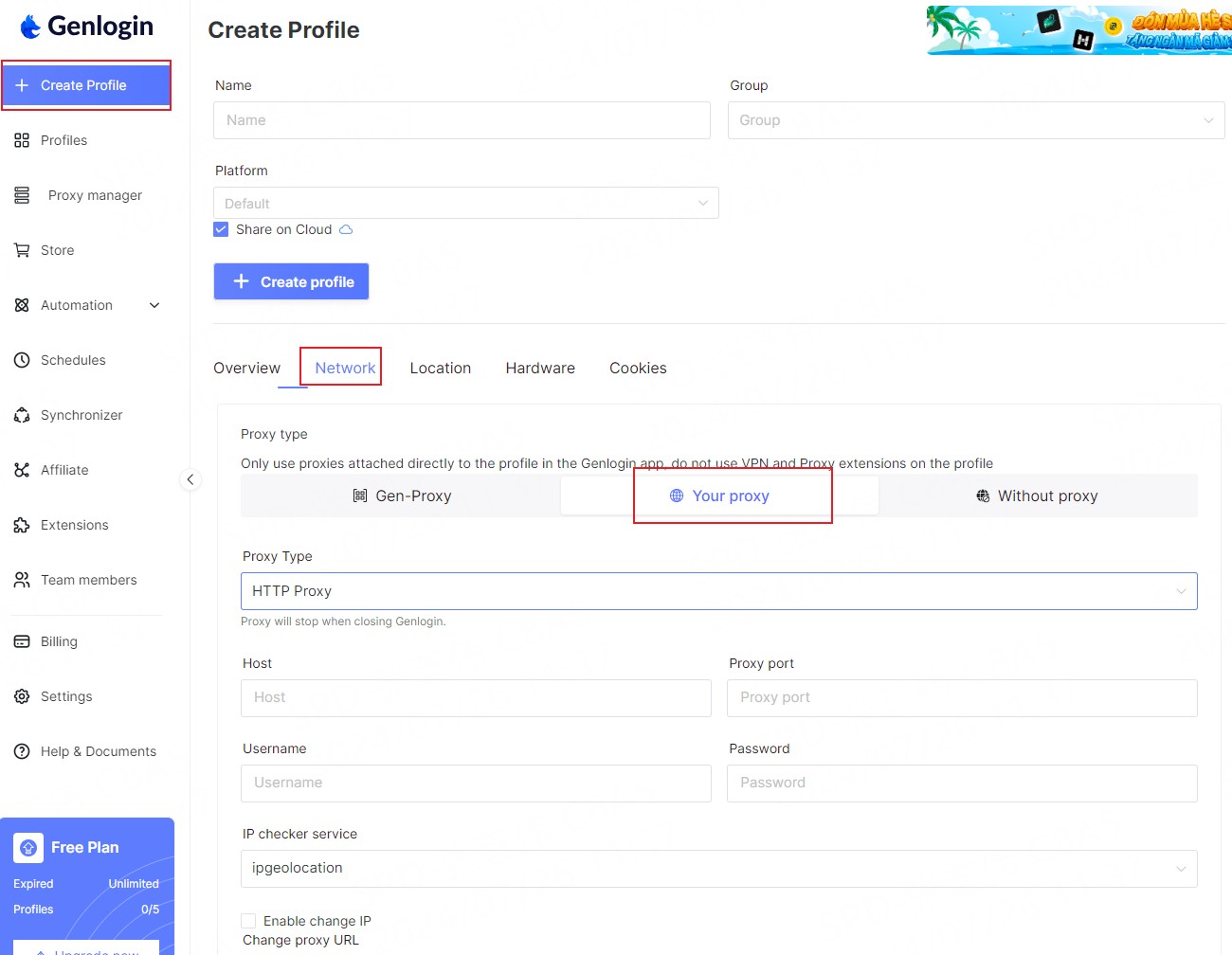 Step 2. Open the genlogin software, click "Create Profile" - "Network"-"Your proxy"