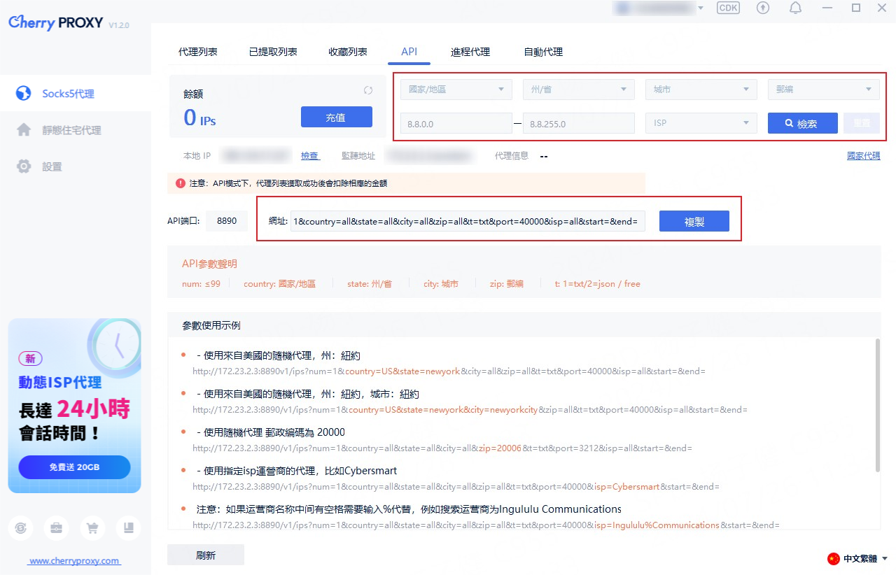 * API模式下,成功取得代理名單後,將扣除對應金額。
